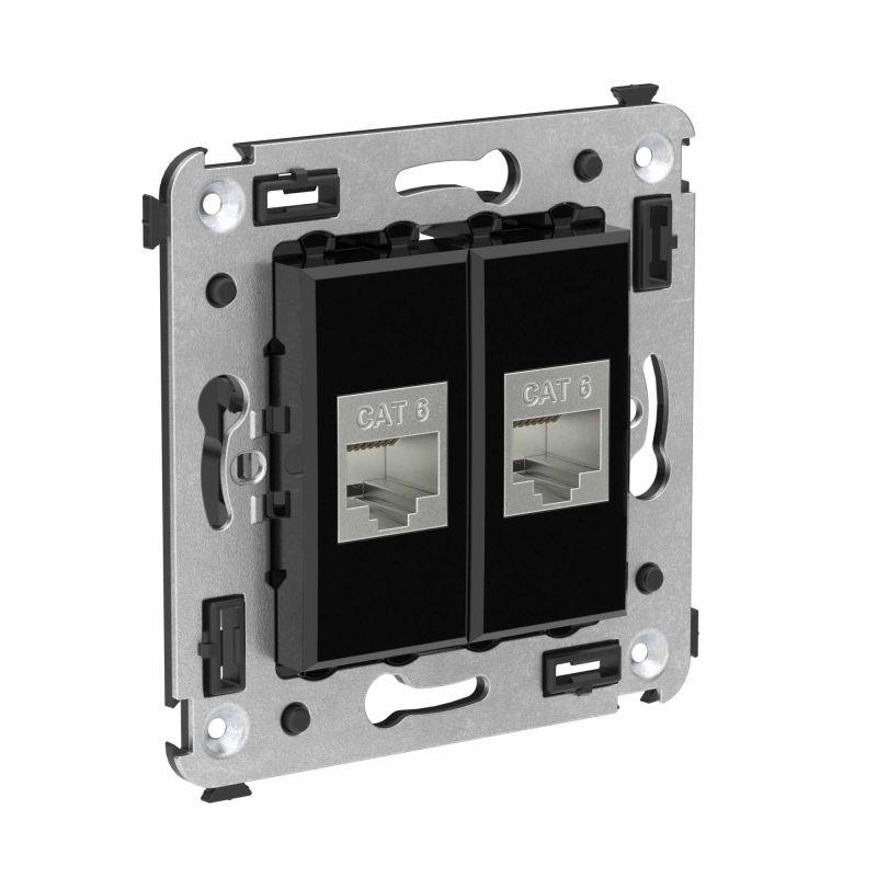 Avanti Компьютерная розетка RJ-45 без шторки в стену, кат.6 двойная экранированная, Черный квадрат 4402794 DKC