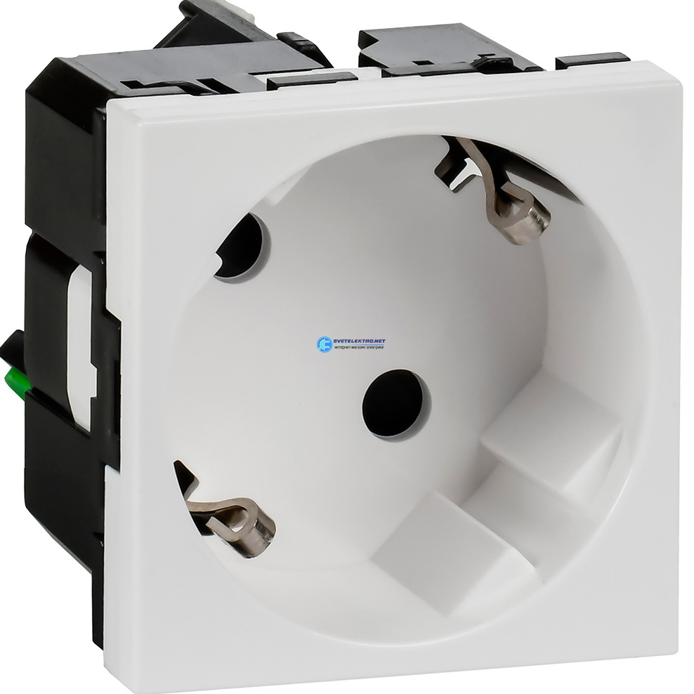 Розетка с заземлением - безвинтовые зажимы - со шторками 16А 50В - 45°- модуля - белый, код 4521059, производитель Legrand