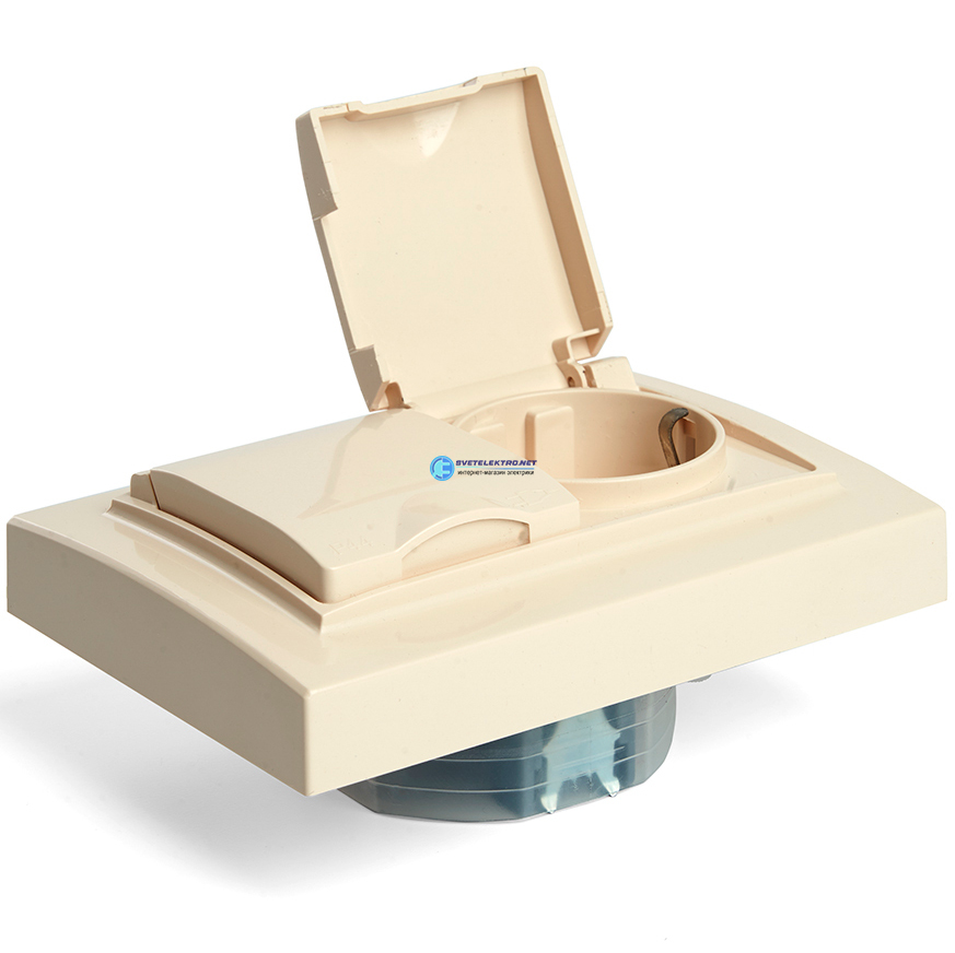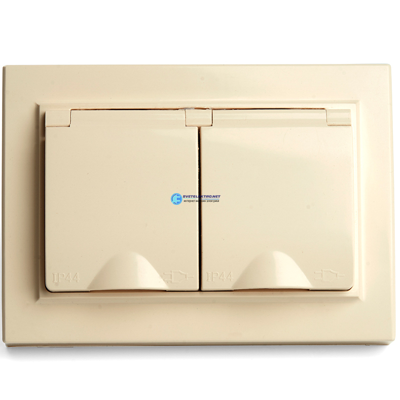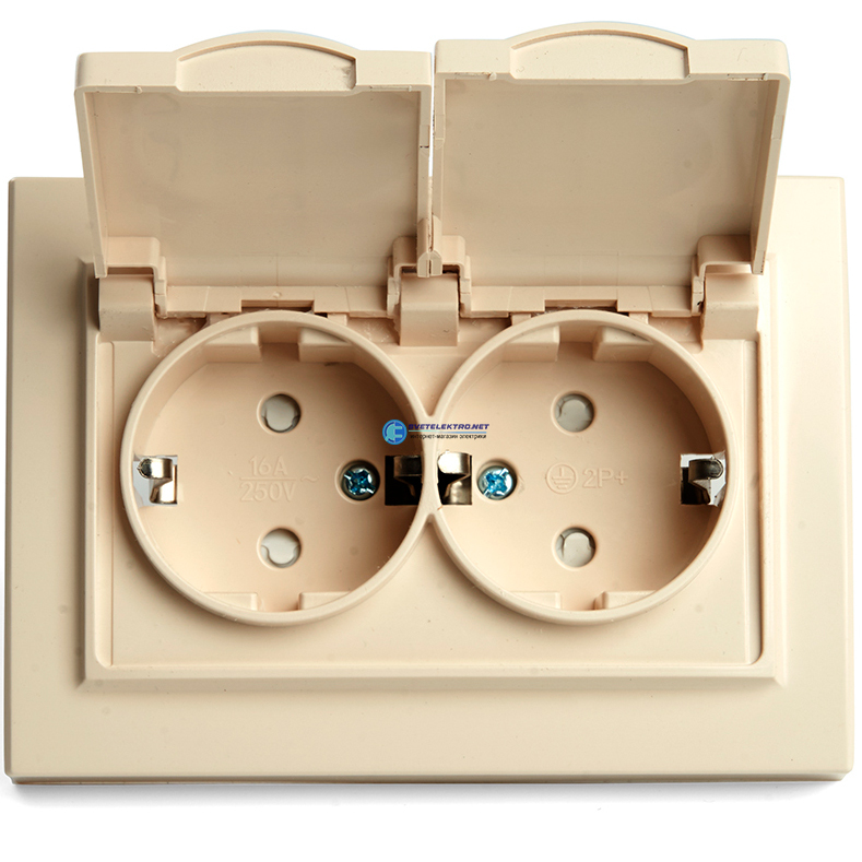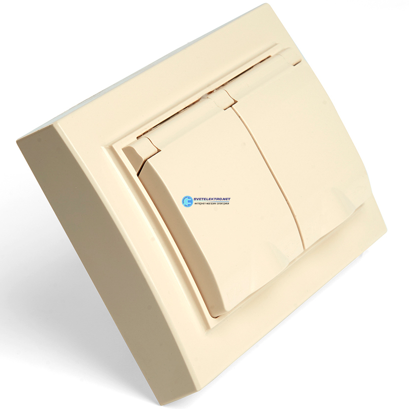 Розетка двухместная с/з с крышкой, 250В, 16А серия Эрна, слоновая кость, код 49137, производитель Stekker