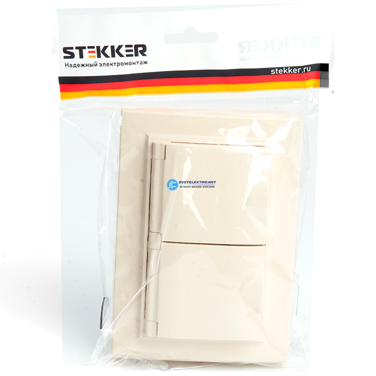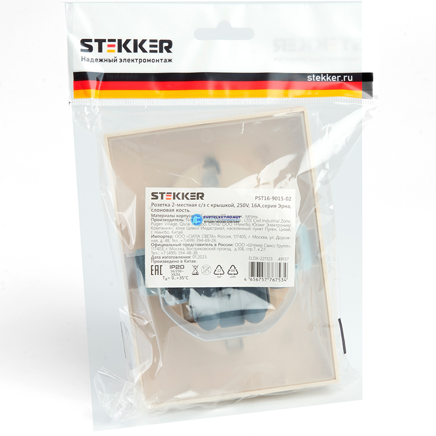 Розетка двухместная с/з с крышкой, 250В, 16А серия Эрна, слоновая кость Stekker 49137 Stekker