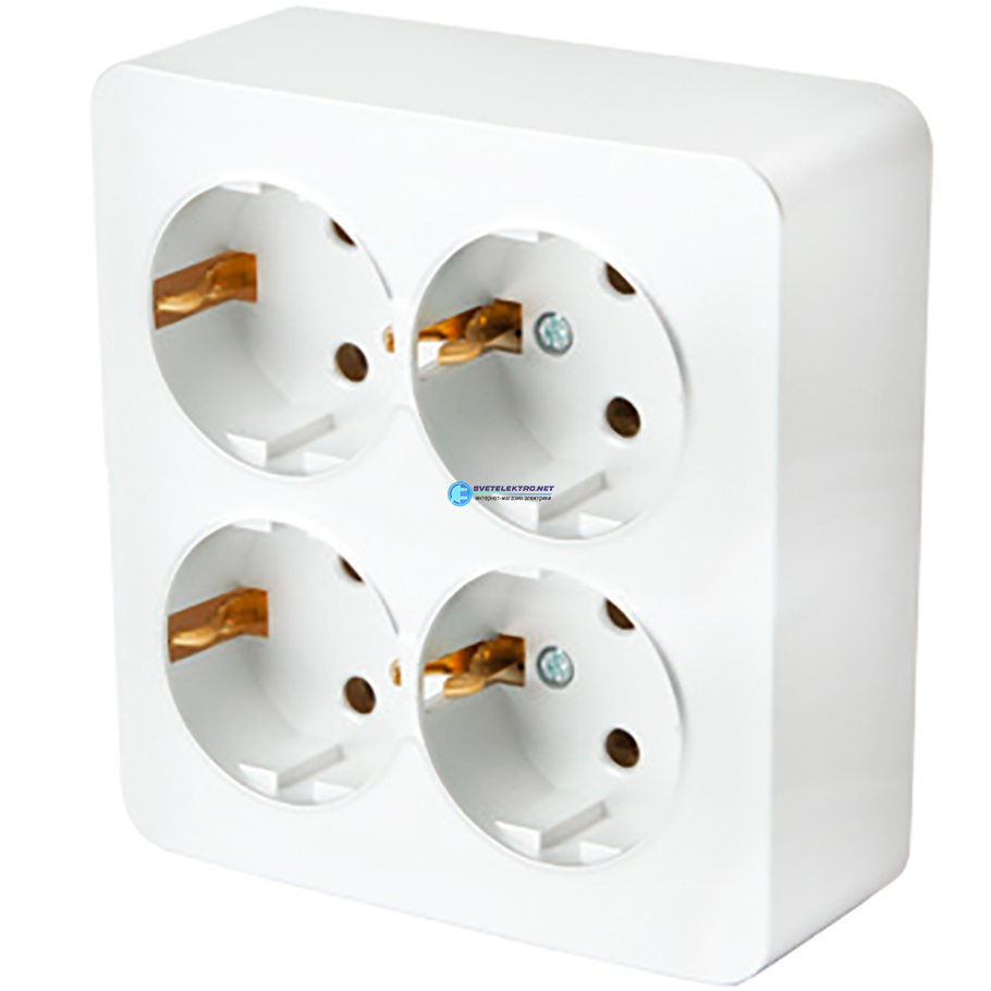 Розетка четырехместная квадратная с/з 250В 10А серия София белый, код 49310, производитель Stekker