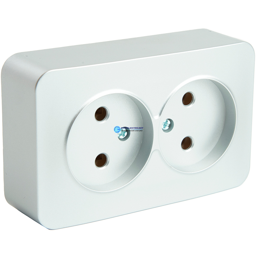Розетка двухместная б/з 250В 10А серия София серебро, код 49327, производитель Stekker