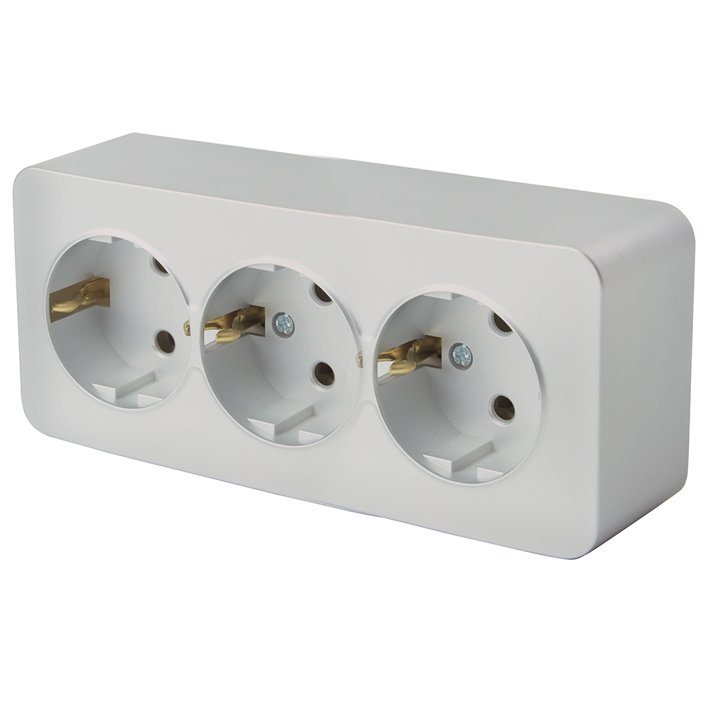 Розетка трехместная с/з 250В 10А серия София серебро 49330 Stekker