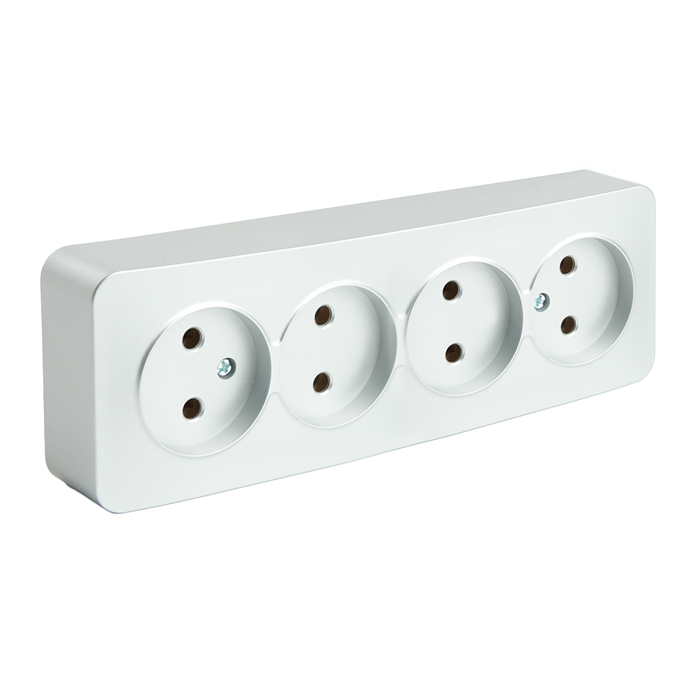 Розетка четырехместная б/з 250В 10А серия София серебро 49331 Stekker