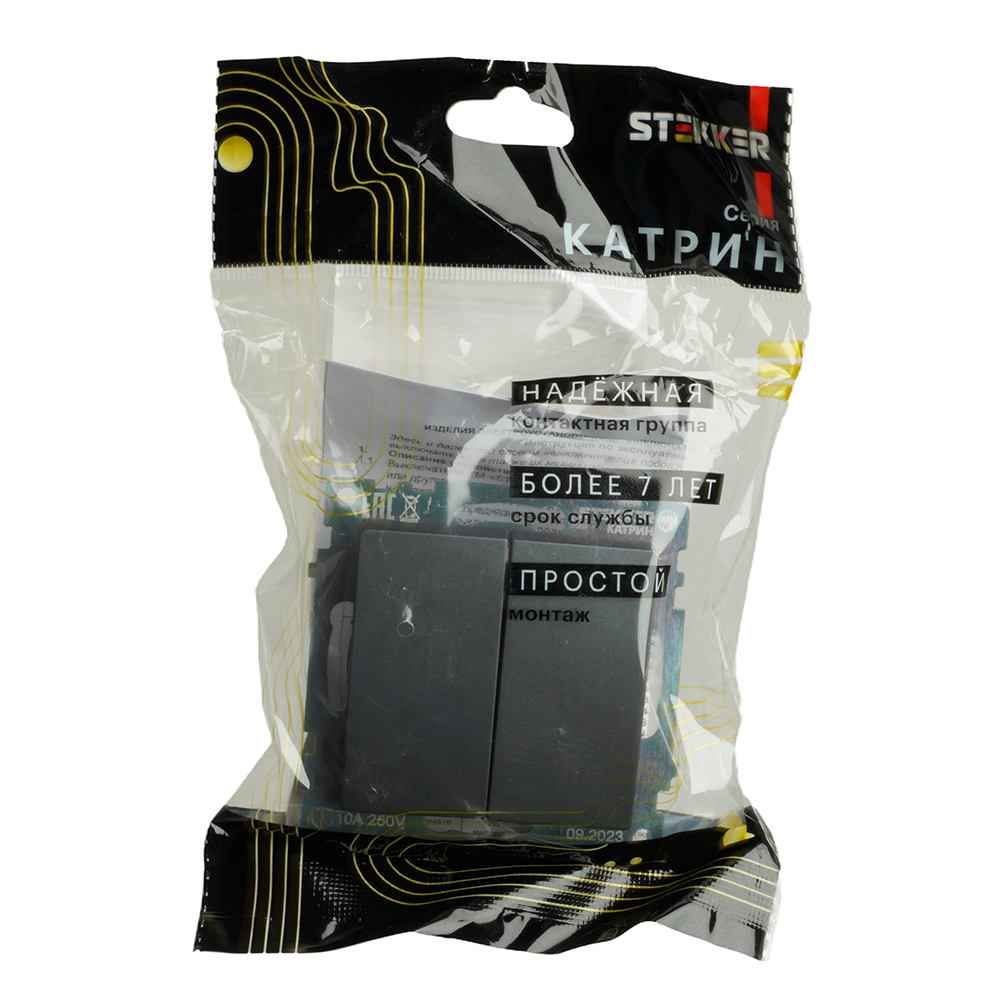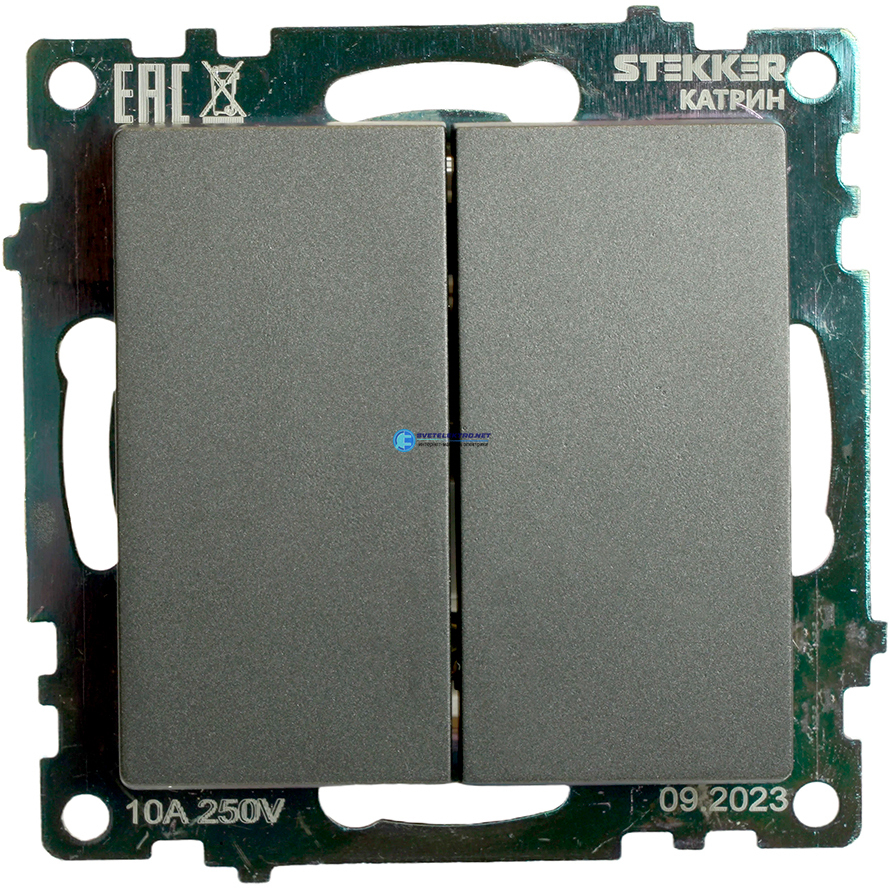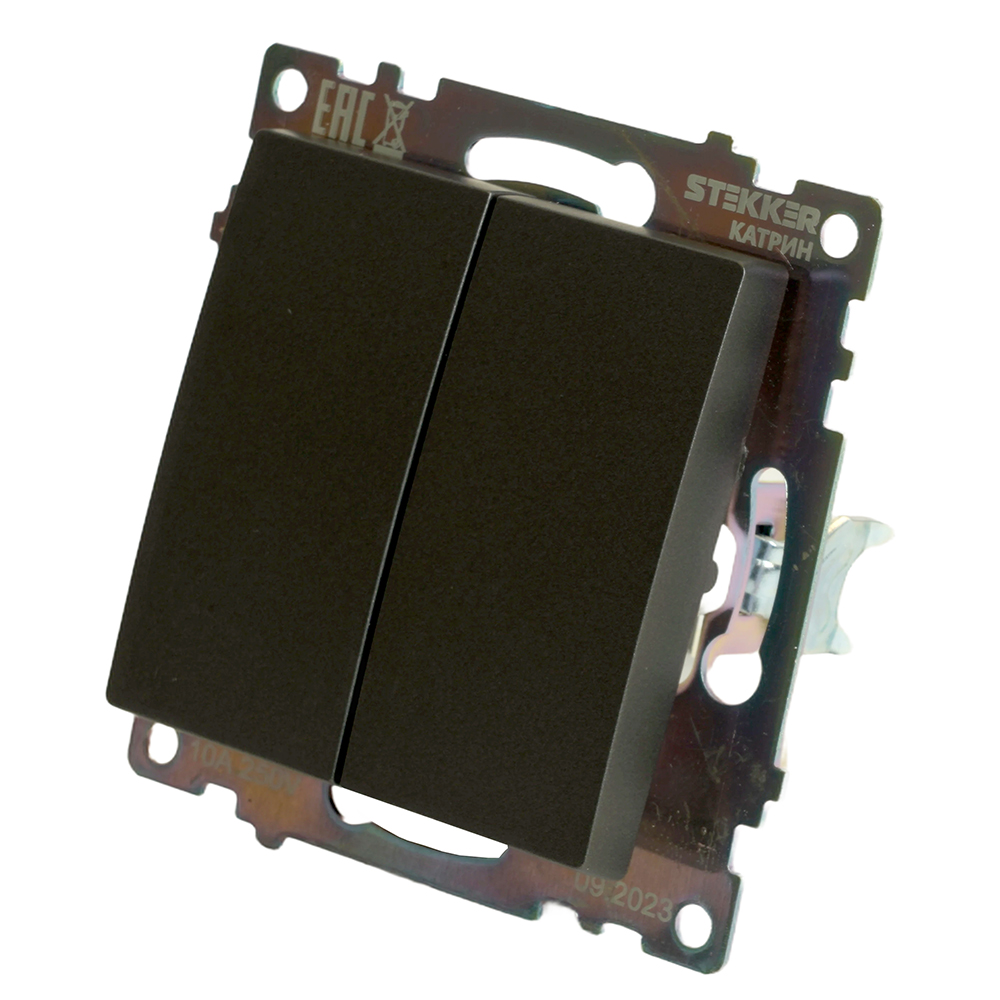 Выключатель двухклавишный (механизм) серия Катрин графит, код 49411, производитель Stekker
