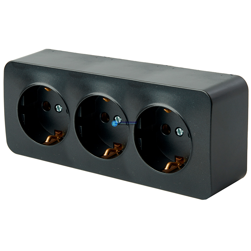 Розетка трехместная с/з 250В 10А серия София черный матовый 49502 Stekker