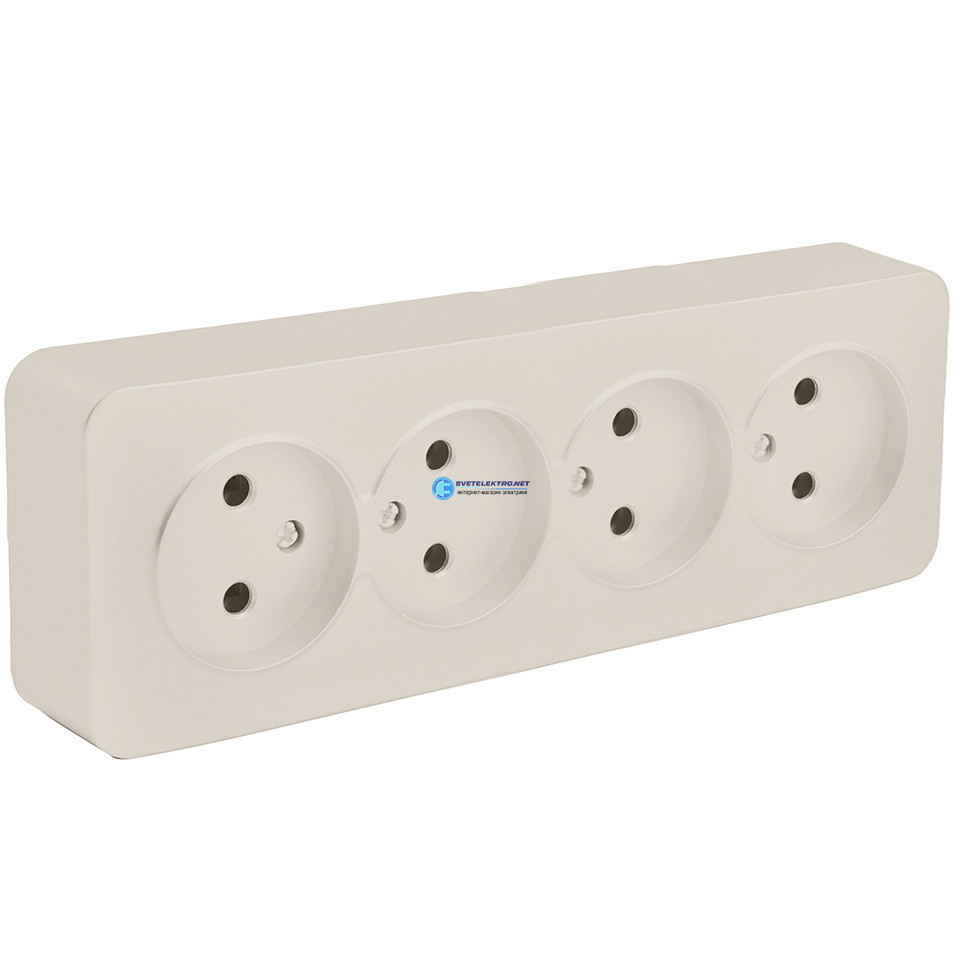 Розетка четырехместная б/з 250В 10А серия София слоновая кость, код 49503, производитель Stekker
