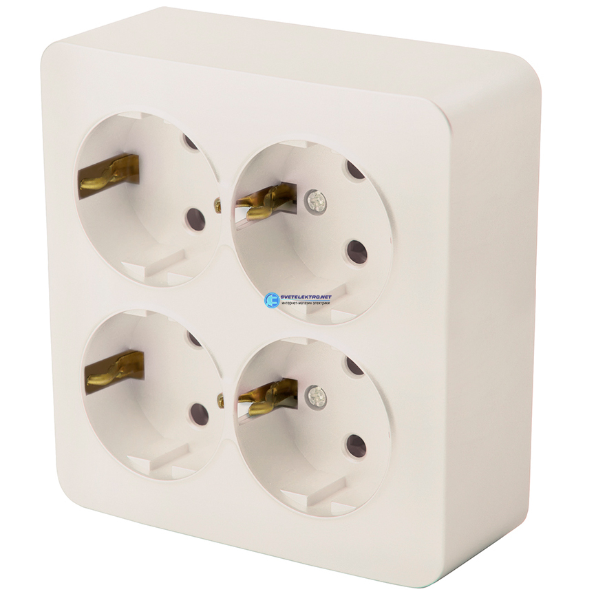 Розетка четырехместная квадратная с/з 250В 10А серия София слоновая кость, код 49509, производитель Stekker