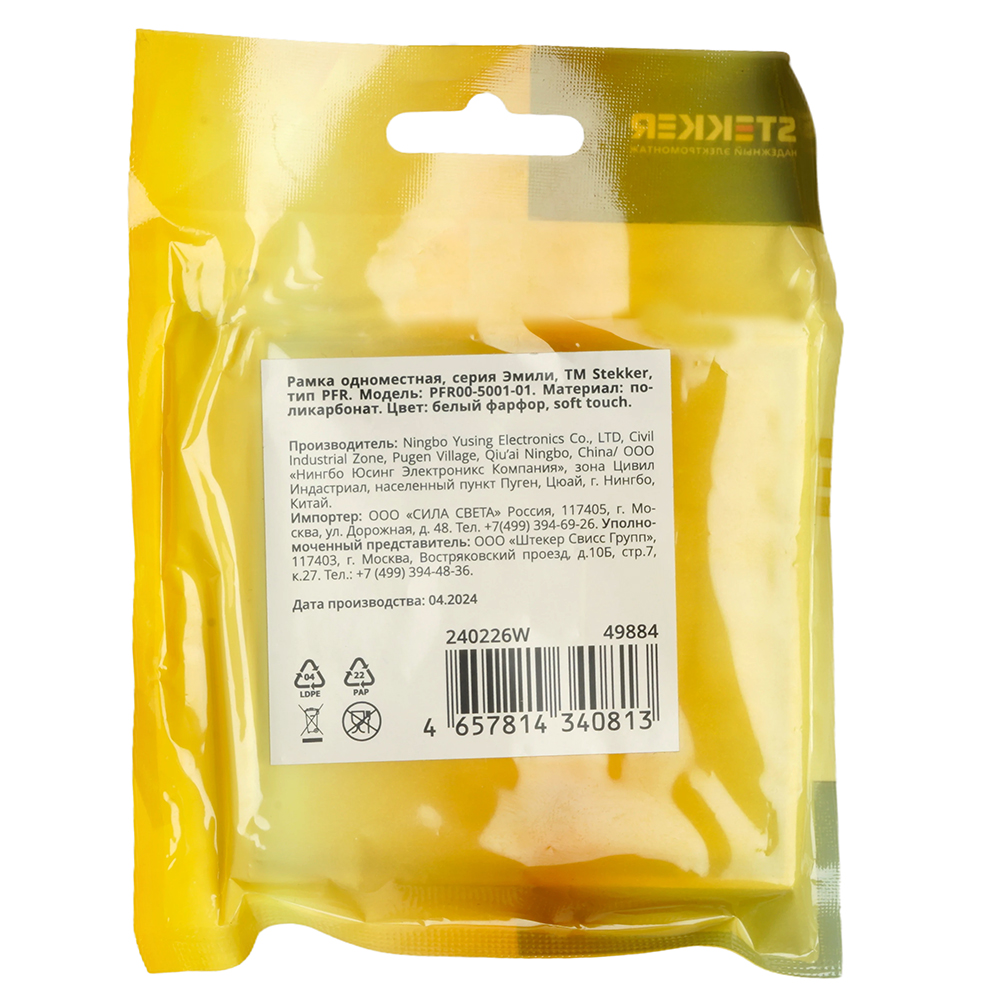 Рамка 1-местная, Эмили,, белый фарфор, soft touch, код 49884, производитель Stekker