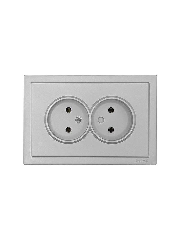 ZIMA Розетка 2-ая с/з ПБТ серый матовый безвинтовой зажим/клемма, код 704-7400-127BQC, производитель Lezard