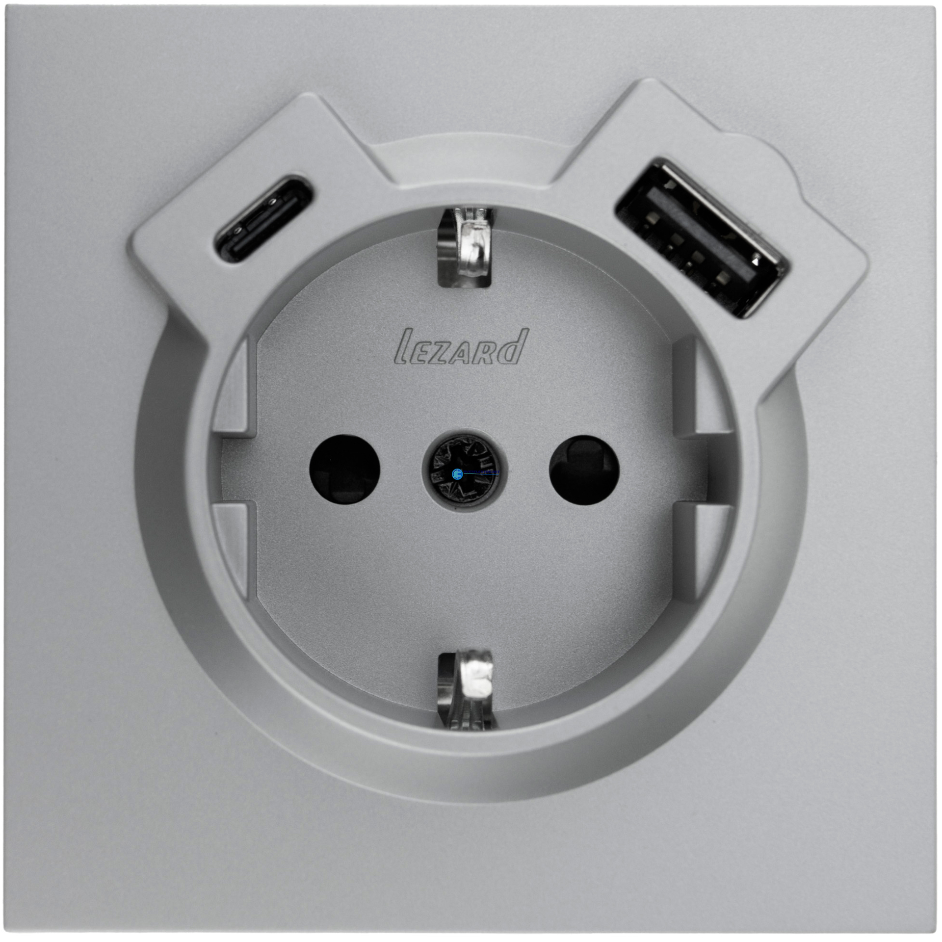 ZIMA Розетка с/з + USB разъем серый матовый, код 704-7488-181TC, производитель Lezard
