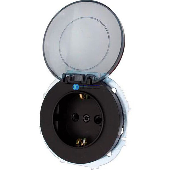 OSEN Розетка с заземлением с крышкой, 16 А, IP44, механизм, чёрный бархат, код 743-4288-123BIPCH, производитель Lezard