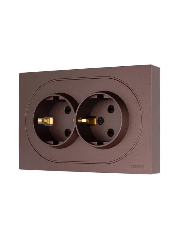 OSEN Розетка двойная с заземлением 16А, механизм, шоколад, код 743-7300-127B, производитель Lezard