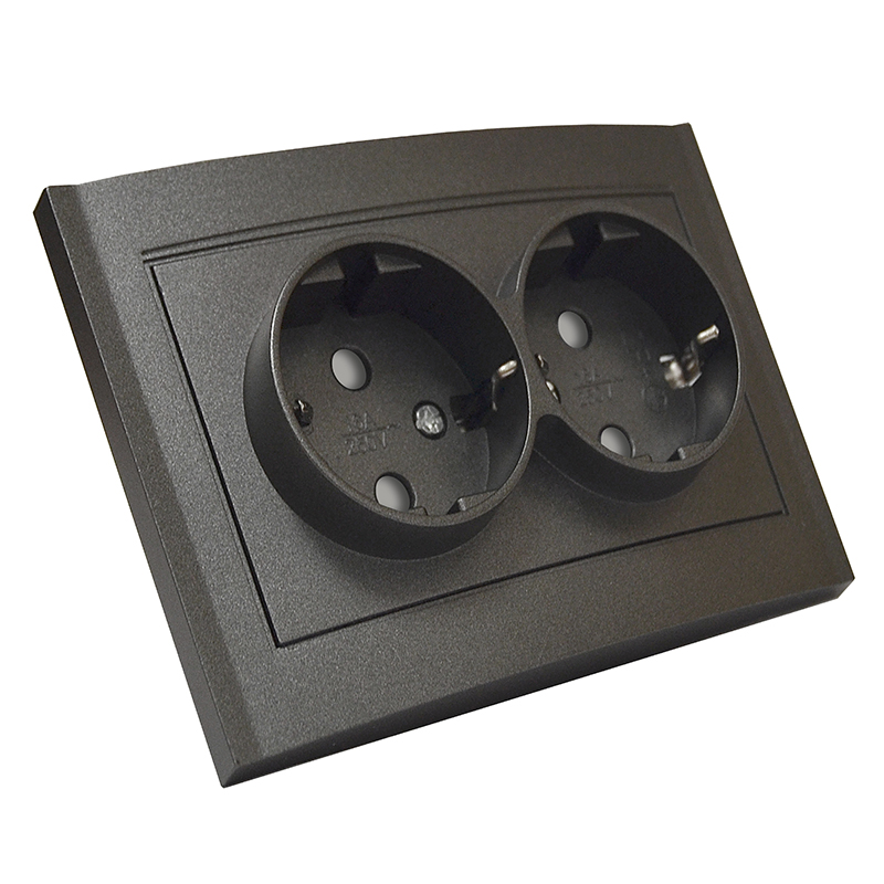 Розетка двухместная серия Бриллиант с заземлением, с защитными шторками, скрытой установки, 16А, 220В, механизм, графит 7947540-Gr UNIVersal