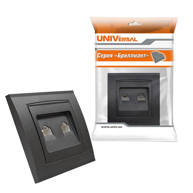 Розетка RJ45+RJ12 серия Бриллиант, скрытой установки, 1А, механизм, графит, код 7947618-Gr, производитель UNIVersal