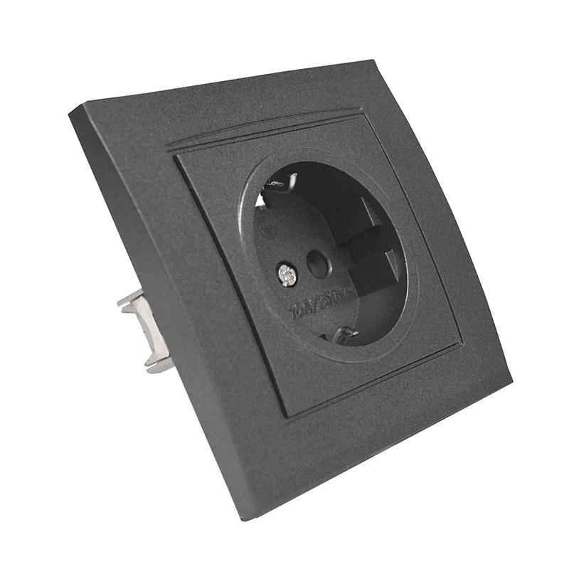 Розетка одноместная серия Бриллиант с заземлением, скрытой установки, 16А, 220В, механизм, графит 7947625-Gr UNIVersal