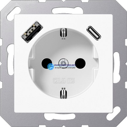 Розетка SCHUKO с USB-зарядным устройством, тип +тип С, термопласт, белый, код A1520-15CAWW, производитель JUNG