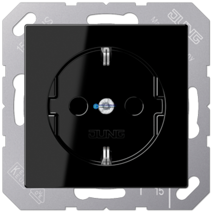 Штепсельная розетка SCHUKO одинарная, с заземлением, без шторок, 16A, 250В (механизм + накладка, без рамки). Серия A500 Материал- термопласт Цвет- A1520BFSW JUNG