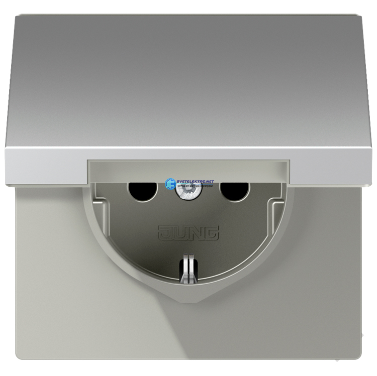 Штепсельная розетка SCHUKO одинарная, с заземлением, с шторками, с откидной крышкой, 16A, 250В (механизм + накладка, без рамки). Серия LS990 Материа, код AL1520KIKL, производитель JUNG