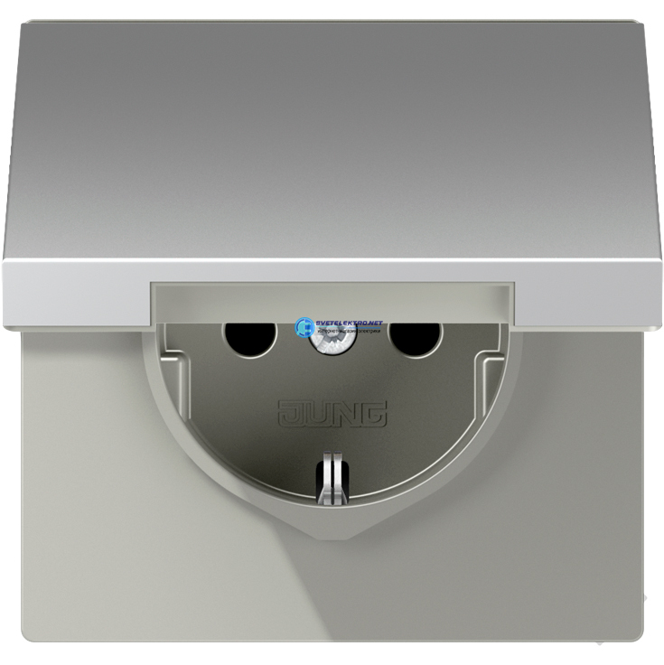 Штепсельная розетка SCHUKO одинарная, с заземлением, с откидной крышкой, 16A, 250В (механизм + накладка, без рамки). Серия LS990 Материал- металл Ц, код AL1520KL, производитель JUNG