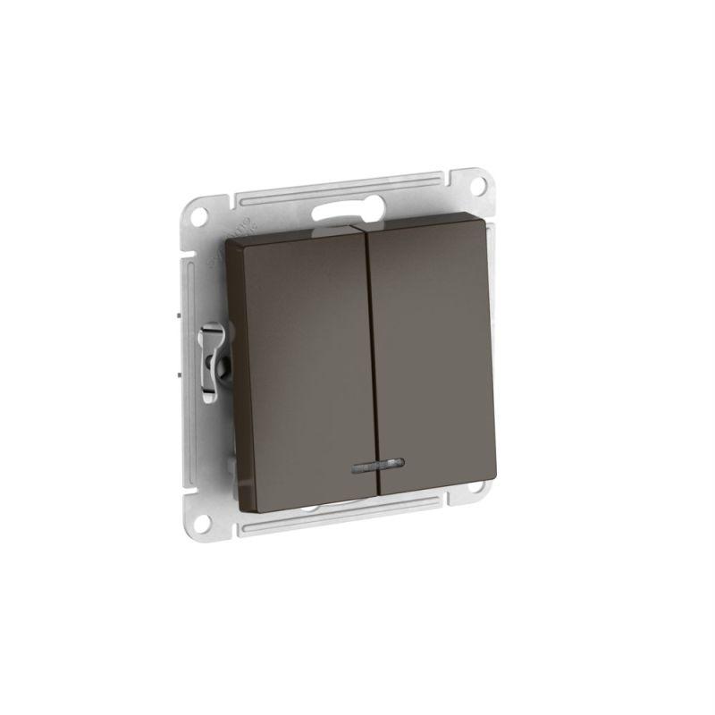 ATLASDESIGN 2-клавишный ВЫКЛЮЧАТЕЛЬ с подсвет.,сх.5а, 10АХ, мех., быстрозажим. клем., МОККО, код ATN000653S, производитель Systeme Electric