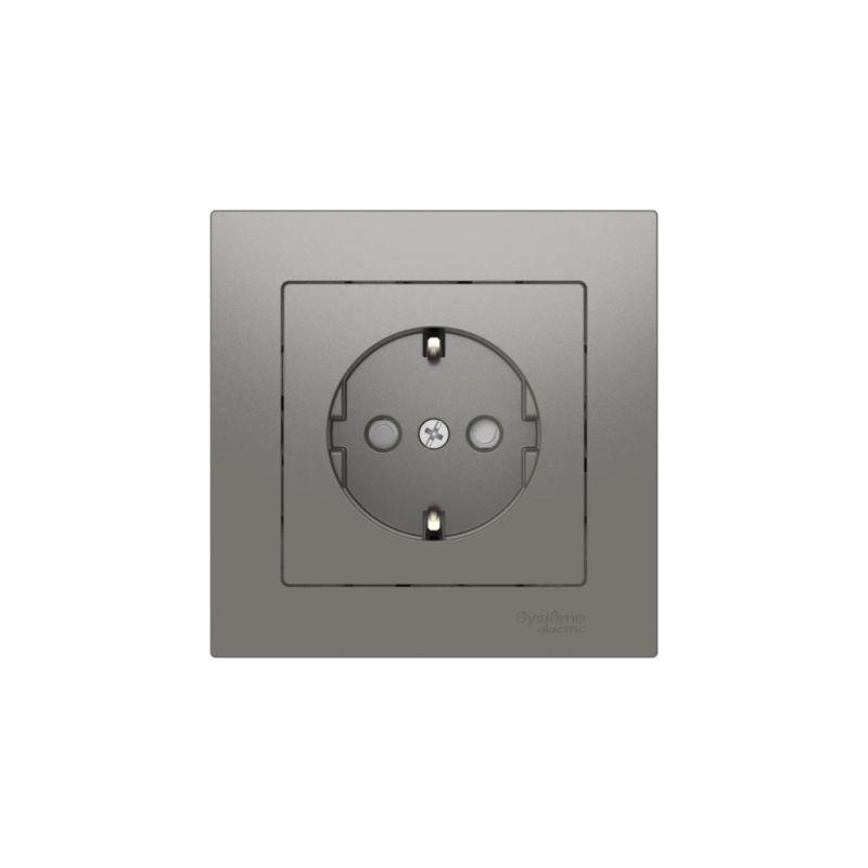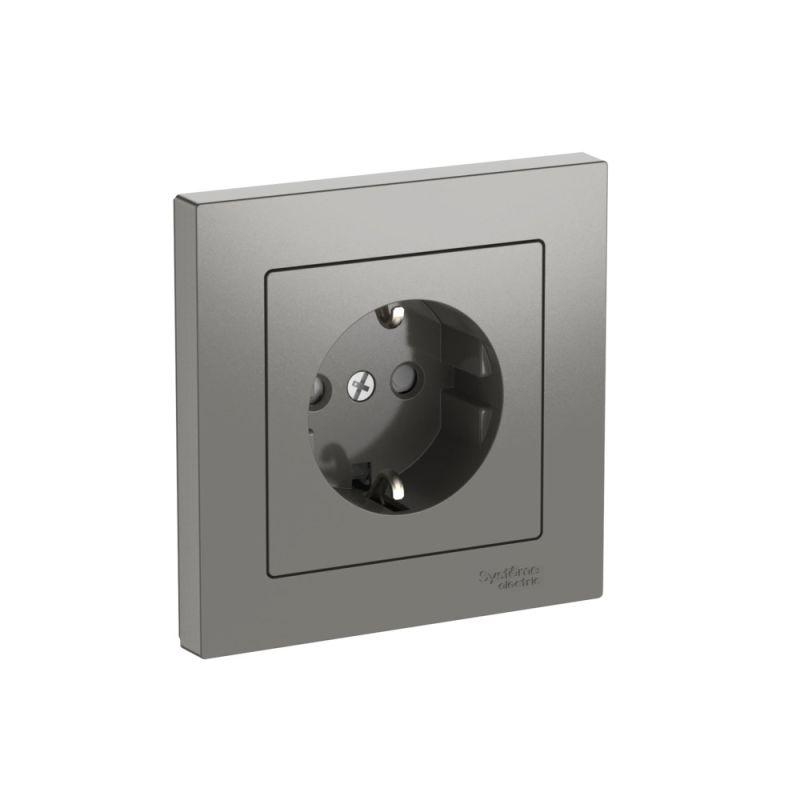 ATLASDESIGN РОЗЕТКА с заземлением со шторками, 16А, в сборе, быстрозажим. клем., СТАЛЬ, код ATN000944S, производитель Systeme Electric