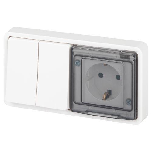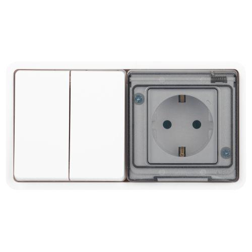 Блок розетка с выключателем Эксперт 11-7522-01 двойной IP55, 16A(10AX)-250В, СУ, белый, код Б0063274, производитель ЭРА