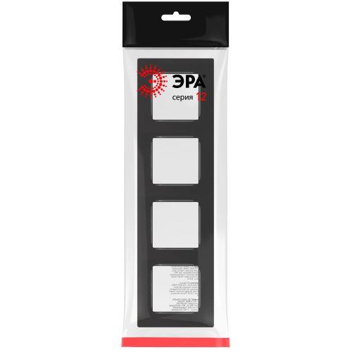 Рамка для розеток и выключателей Серия 12 12-5204-06 на 4 поста, Классик, чёрный, код Б0067718, производитель ЭРА