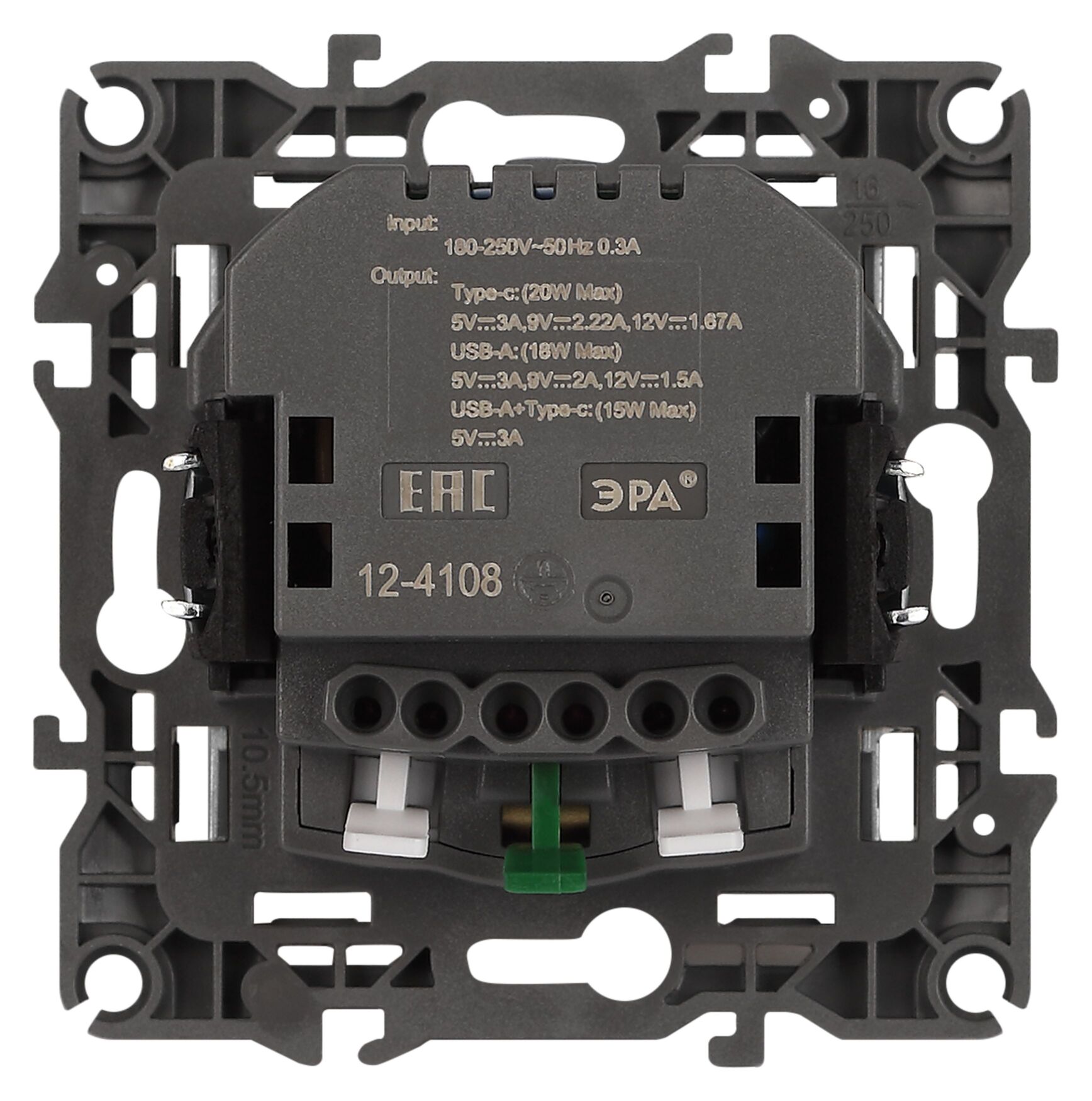 Розетка Серия 12 12-4108-01 2P+E 16A-250В со шторками с USB type-A+C 5В-3А белый, код Б0067752, производитель ЭРА