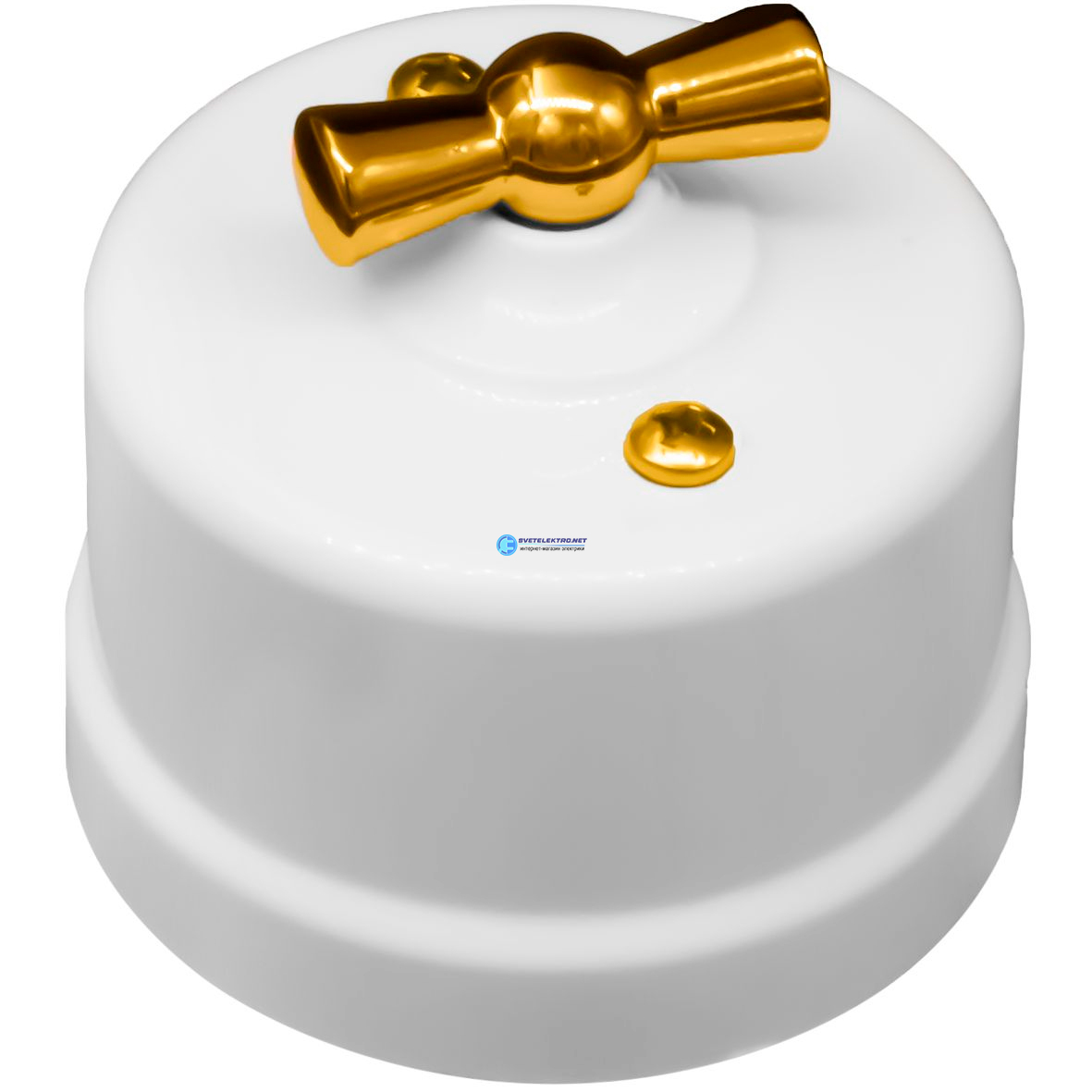 Выключатель Лизетта 1-кл., пластик, цвет Белый, Золото, код B1-200-21-G, производитель Bironi