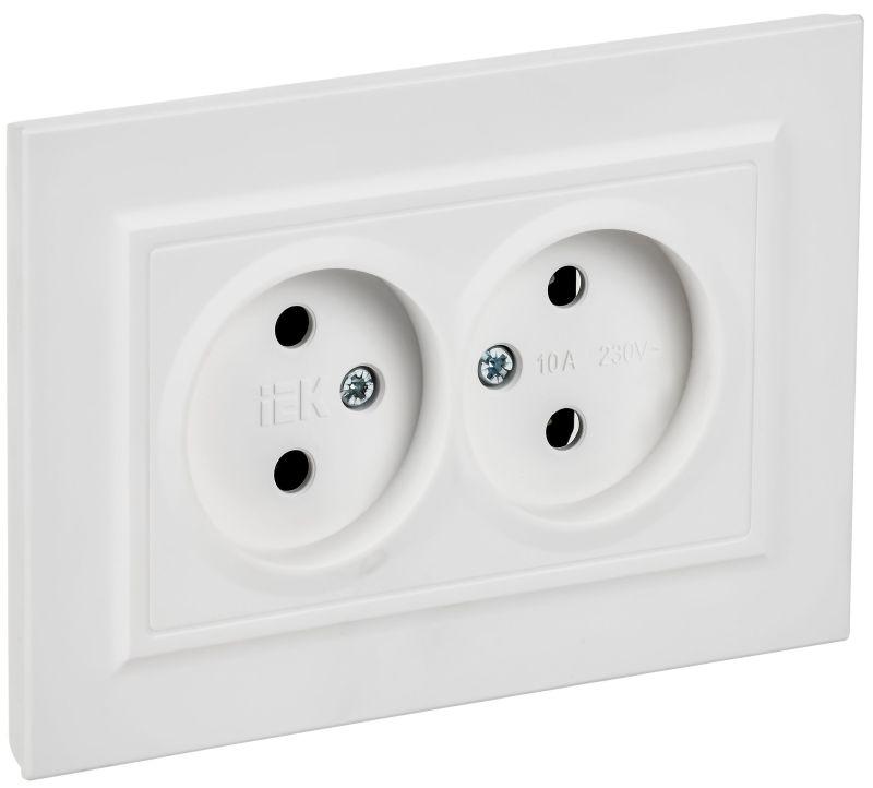 BRITE Розетка 2-местная без заземления без защитных шторок 10А в сборе РС12-2-БрАБ арктический белый, код BR-R20-10-K91-F, производитель IEK