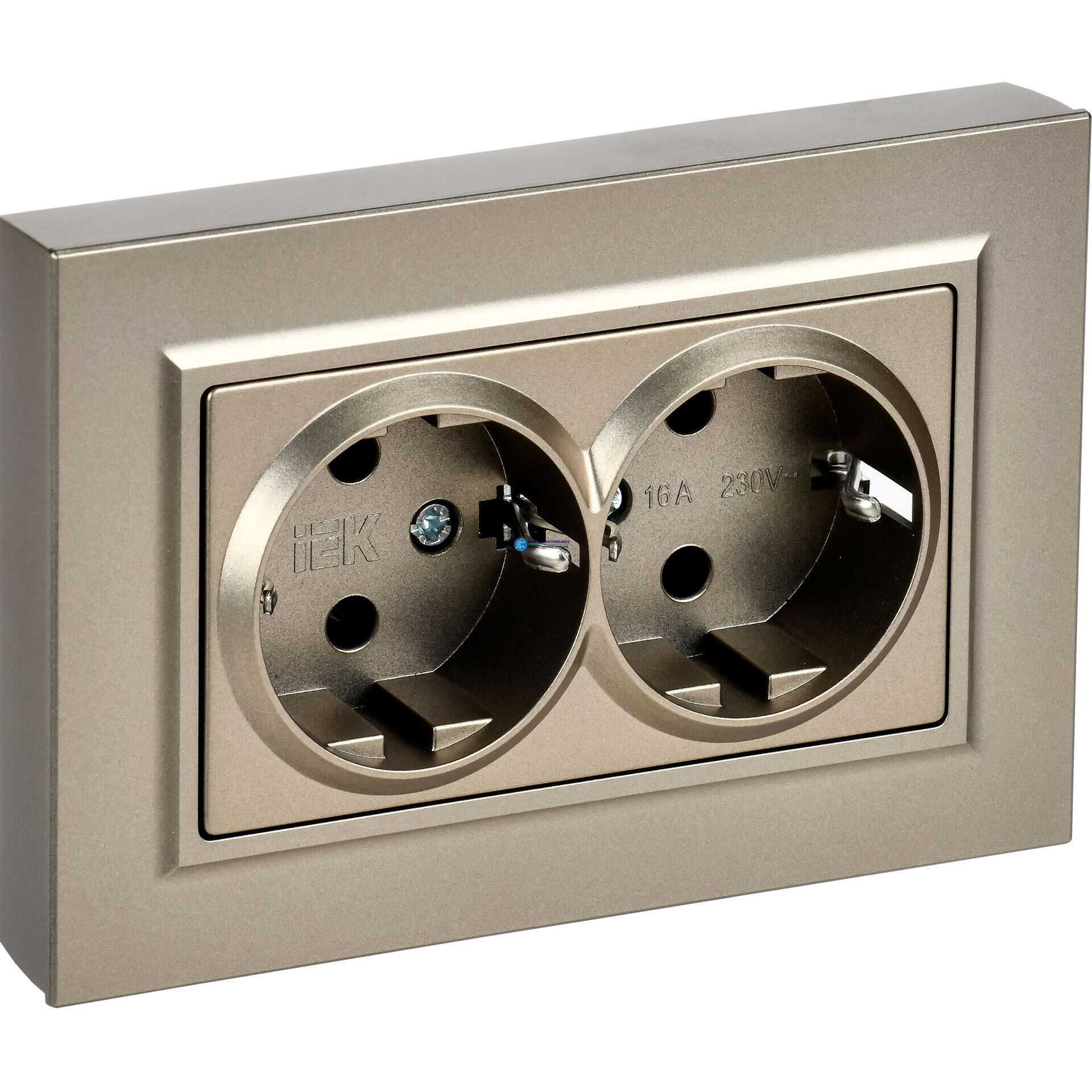 BRITE Розетка 2-местная с заземлением без защитных шторок плоская 16А в сборе РСПл12-3-БрШ шампань IEK BR-R27-16-K37-F IEK