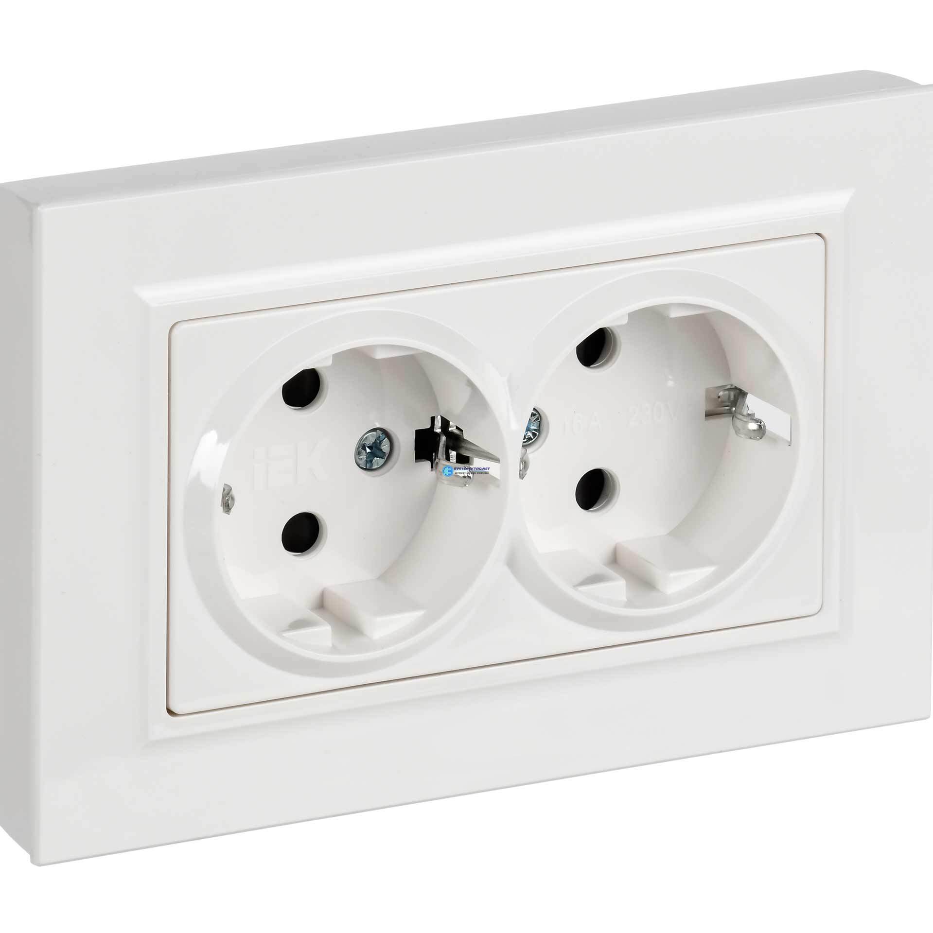 BRITE Розетка 2-местная с заземлением с защитными шторками плоская 16А в сборе РСшПл12-3-БрБ белый IEK BR-R28-16-K01-F IEK