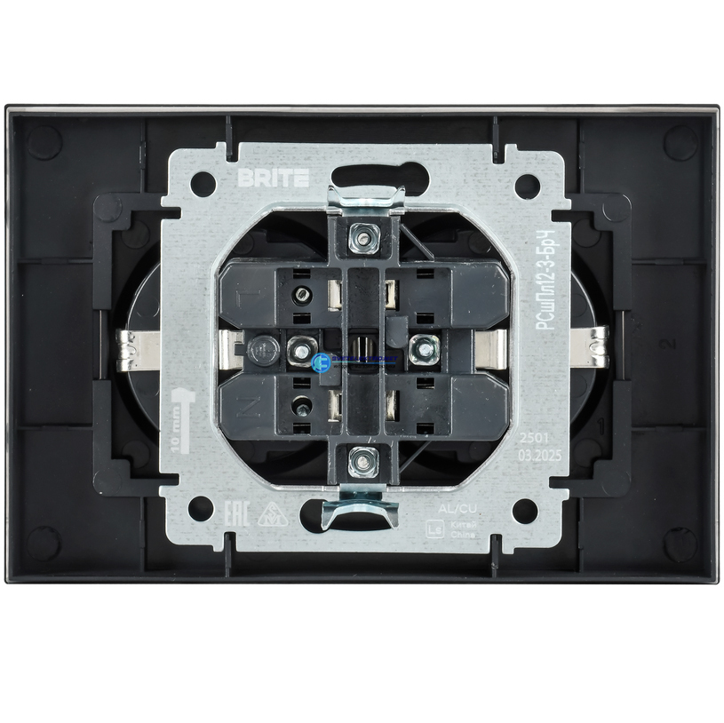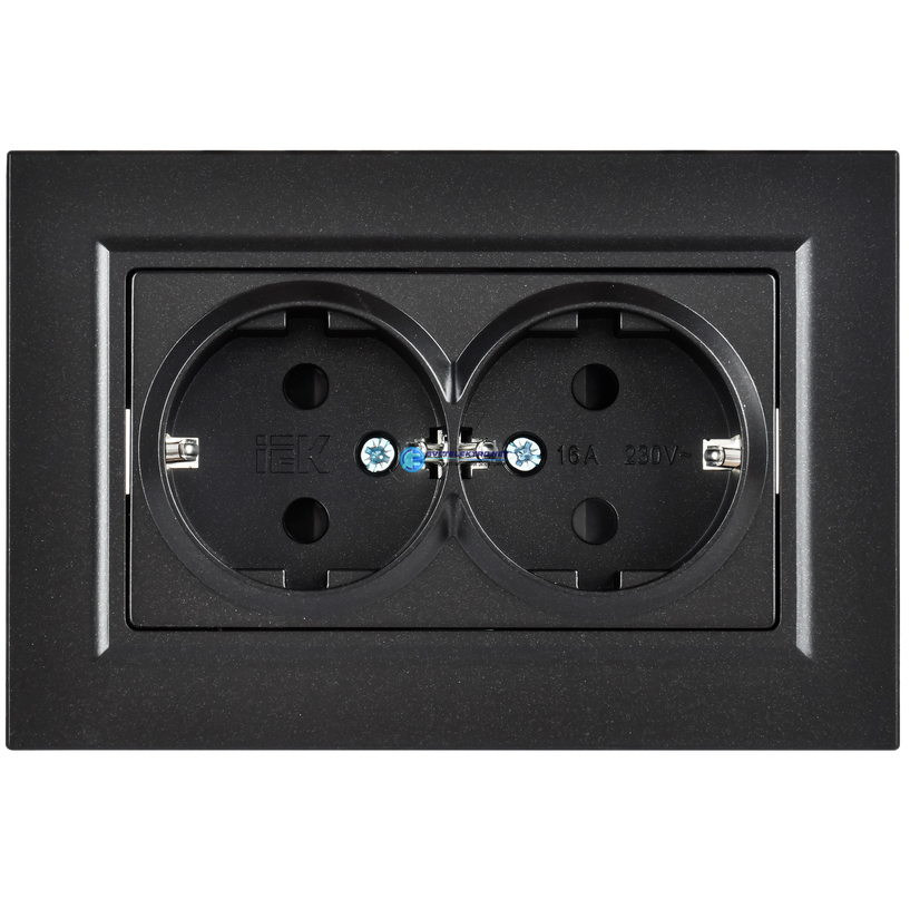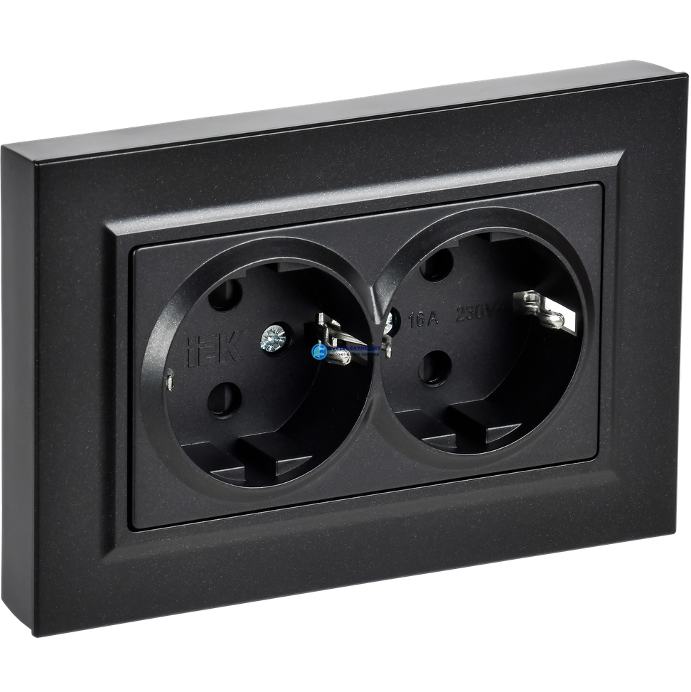 BRITE Розетка 2-местная с заземлением с защитными шторками плоская 16А в сборе РСшПл12-3-БрЧ черный, код BR-R28-16-K02-F, производитель IEK