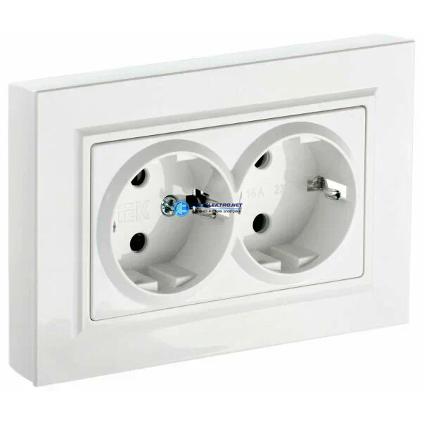 BRITE Розетка 2-местная с заземлением с защитными шторками плоская 16А в сборе РСшПл12-3-БрАБ арктический белый, код BR-R28-16-K91-F, производитель IEK