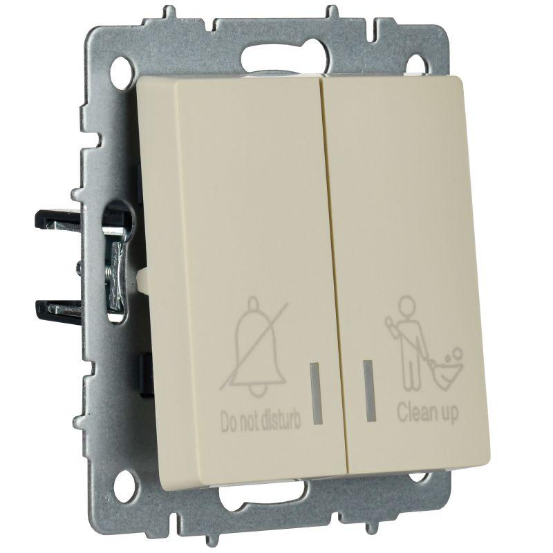 BRITE Выключатель 2-клавишный с индикацией для отелей 10А ВС10-2-9-БрКр бежевый, код BR-V20-2-10-K10, производитель IEK