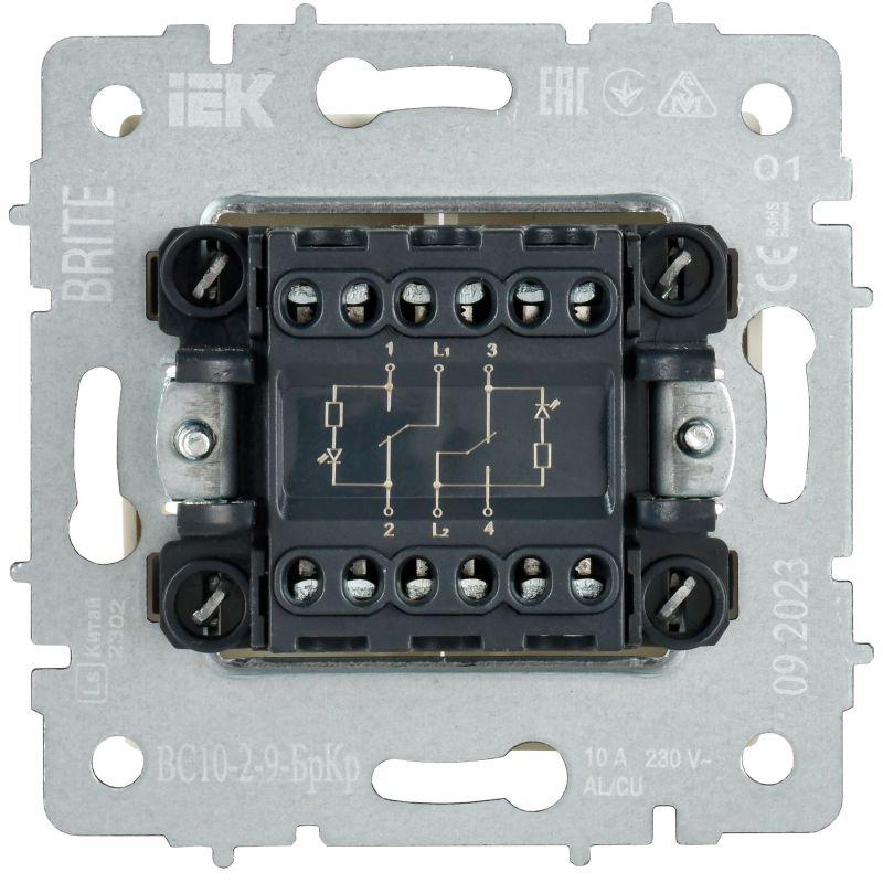 BRITE Выключатель 2-клавишный с индикацией для отелей 10А ВС10-2-9-БрКр бежевый BR-V20-2-10-K10 IEK