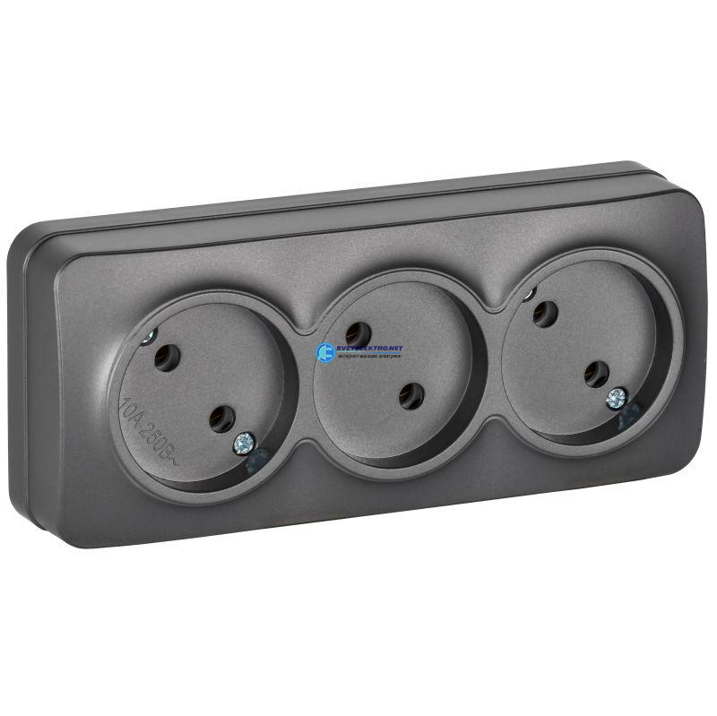 GLORY Розетка 3-местная для открытой установки без заземления без защитных шторок 10А РС23-2-ХСм сталь матовый, код ERH30-K46M-10, производитель IEK