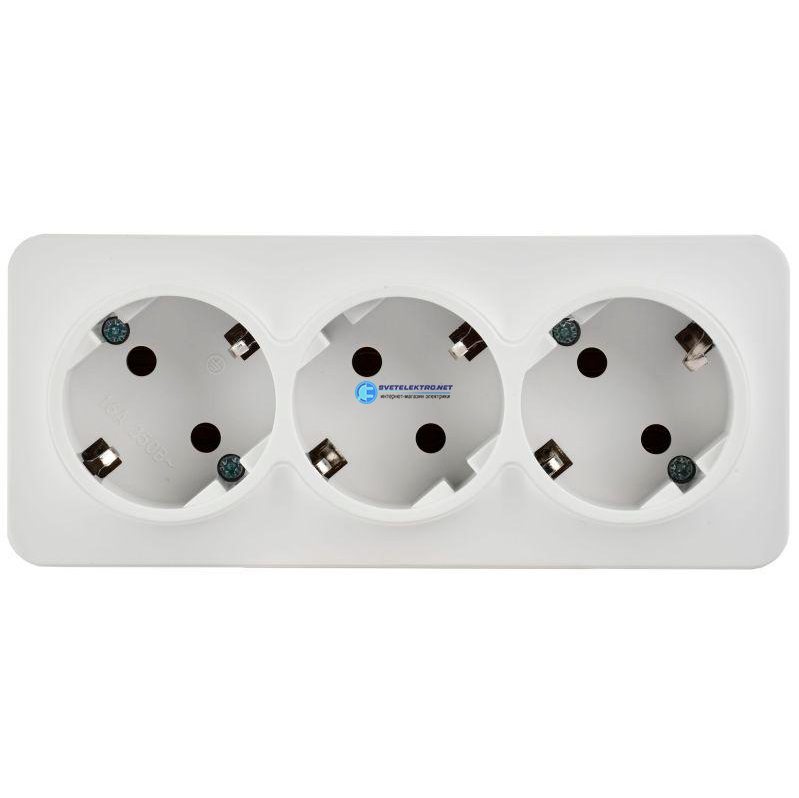 GLORY Розетка 3-местная для открытой установки с заземлением без защитных шторок 16А РС23-3-ХБм белый матовый, код ERH31-K01M-16, производитель IEK