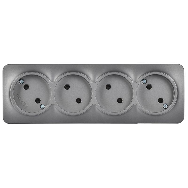 GLORY Розетка 4-местная для открытой установки без заземления без защитных шторок 10А РС24-2-ХСм сталь матовый, код ERH40-K46M-10, производитель IEK