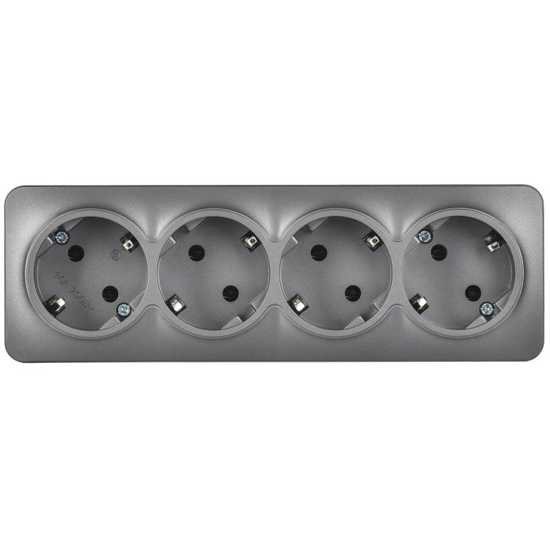 GLORY Розетка 4-местная для открытой установки с заземлением без защитных шторок 16А РС24-3-ХСм сталь матовый, код ERH41-K46M-16, производитель IEK