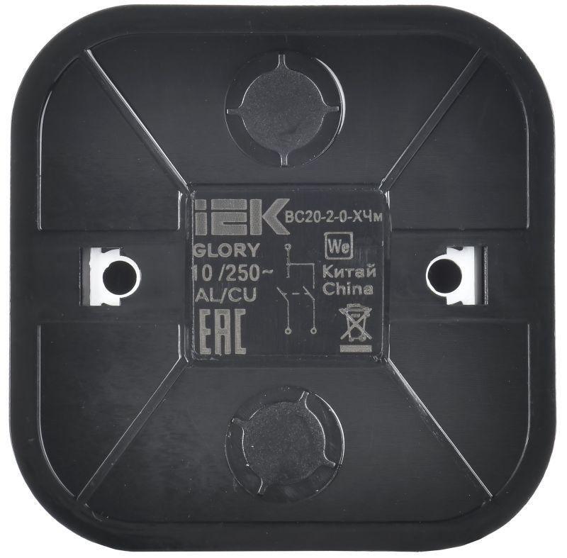 GLORY Выключатель 2-клавишный для открытой установки 10А ВС20-2-0-ХЧм черный матовый, код EVH20-K02M-10, производитель IEK
