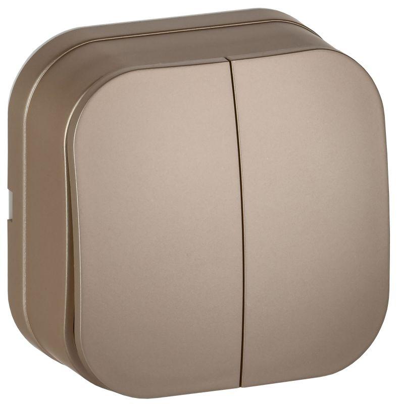 GLORY Выключатель 2-клавишный для открытой установки 10А ВС20-2-0-ХШм шампань матовый, код EVH20-K37M-10, производитель IEK