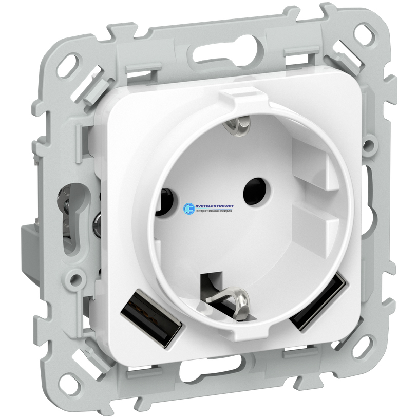 FLITE Розетка 1-местная с заземлением с защитными шторками 16А с USB A+A 3,1А безвинтовое крепление РСЮша11-1-ФлБ белый FI-R14-16-1-U21-D31-K01 IEK
