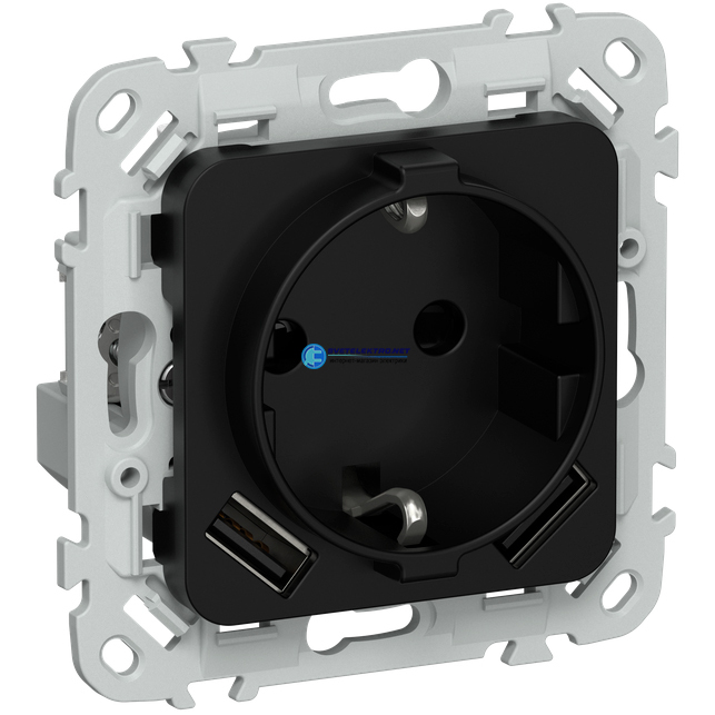 FLITE Розетка 1-местная с заземлением с защитными шторками 16А с USB A+A 3,1А безвинтовое крепление РСЮша11-1-ФлЧ черный FI-R14-16-1-U21-D31-K02 IEK