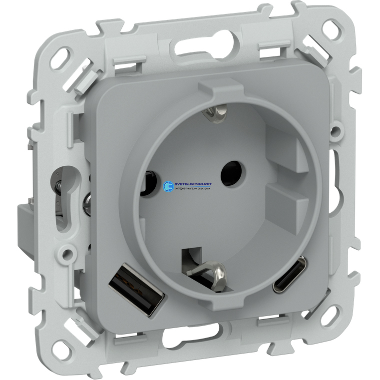 FLITE Розетка 1-местная с заземлением с защитными шторками 16А с USB A+C 20Вт безвинтовое крепление РСЮшс11-1-ФлС серый, код FI-R14-16-1-U22-020-K03, производитель IEK