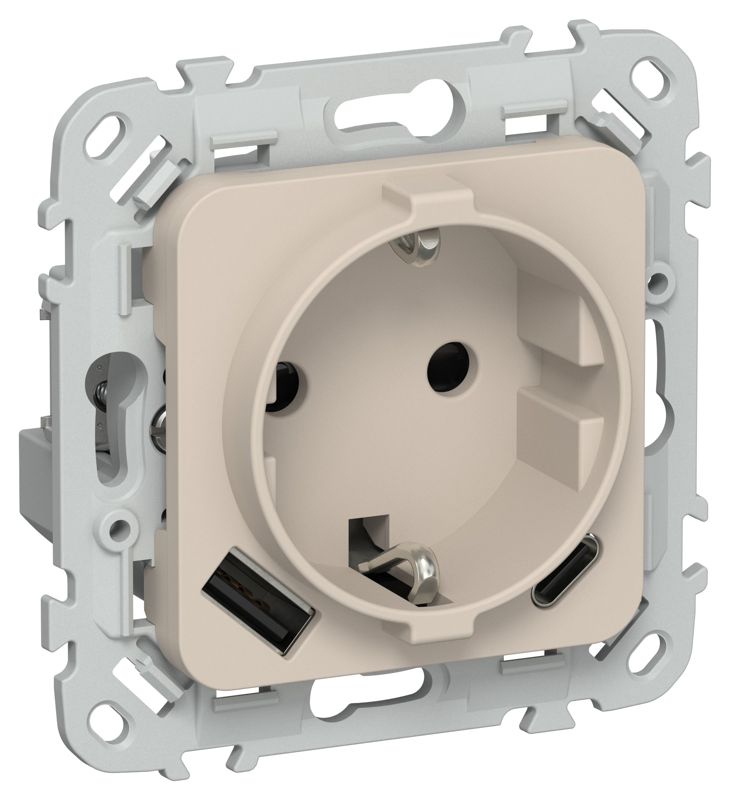 FLITE Розетка 1-местная с заземлением с защитными шторками 16А с USB A+C 20Вт безвинтовое крепление РСЮшс11-1-ФлЛ льняной, код FI-R14-16-1-U22-020-K88, производитель IEK