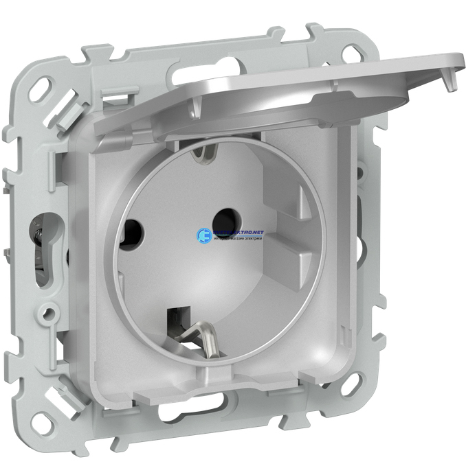 FLITE Розетка с заземлением с защитными шторками и крышкой безвинтовое крепление 16А IP44 РСшкр11-1-44-ФлА алюминий, код FI-R16-16-1-44-K47, производитель IEK
