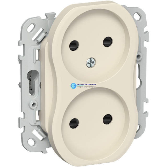 FLITE Розетка 2-местная без заземления с защитными шторками безвинтовое крепление 10А РСш02-1-ФлСл сливочный IEK FI-R23-10-1-K86 IEK