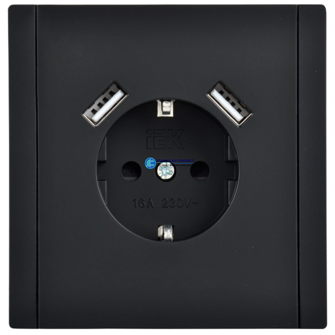 FORTE&PIANO Розетка 1-местная с заземлением с защитными шторками винтовое крепление 16А USB A+A 3,1А FP145 черный, код FP-R14-16-U21-D31-K02, производитель IEK